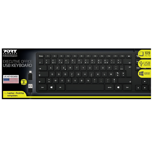 AVAILABLE FOR BACKORDERPort Office Executive Low Profile 109key Wired Keyboard - Black